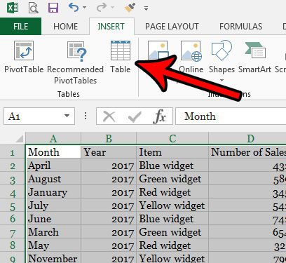 我们的文章在下面继续提供有关如何在 Excel 2013 中制作表格的附加信息和这些步骤的图片,以及有关格式化和过滤表格的信息。