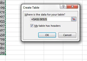 - 选中左侧的框我的表格有标题(如果是)然后单击好的。