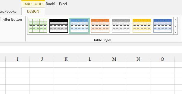 第 2 步:从设计中选择一种表格样式丝带部分。