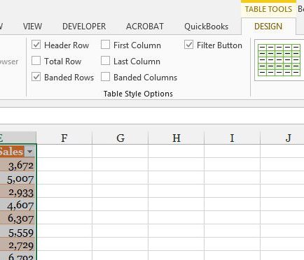 现在您已将一些数据转换为表格,并且知道如何在 Excel 2013 中制作表格,您可能想要更改其外观。这可以包括更改行或列的列,或自动更改行颜色等。