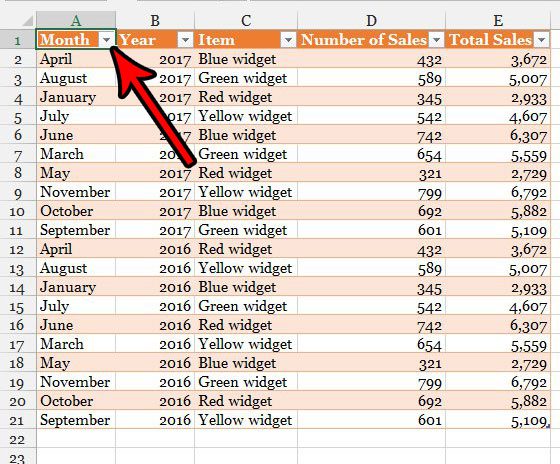 本节中的步骤将向您展示如何使用已创建的表的过滤功能。如果您没有看到我们将使用的过滤下拉菜单,请确保您正在使用标题行,并且您已选中上一节中讨论的过滤按钮选项。
