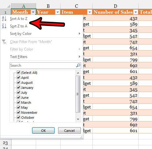 第 2 步:选择从 A 到 Z 排序选项来过滤该列中的数据,最小值位于顶部,或者选择从 Z 到 A 排序用于过滤顶部最大值的数据的选项。或者,您可以选择按颜色排序如果您为不同的行设置了自定义颜色并希望以这种方式排序,请选择此选项。