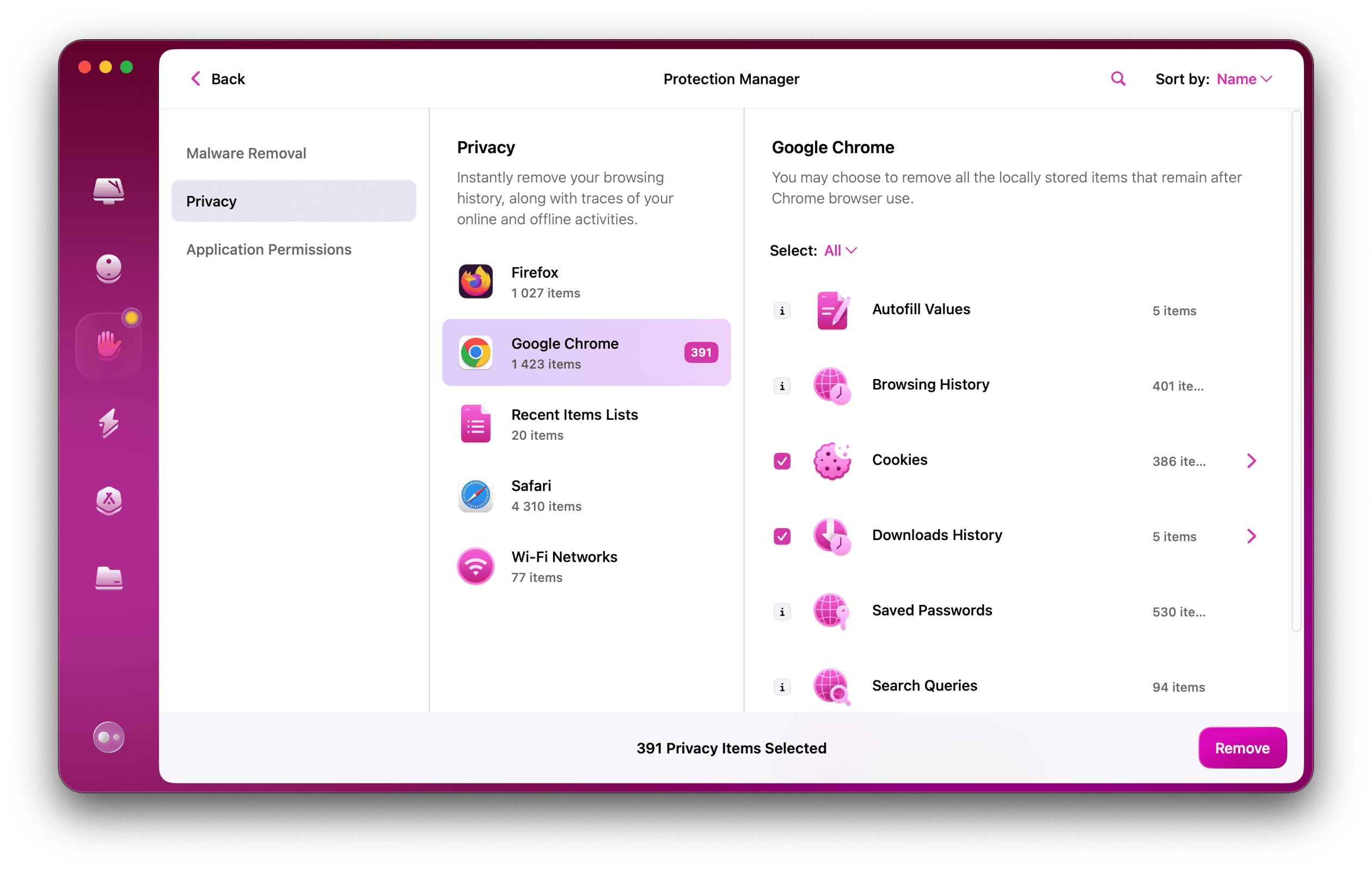 由于这是一项您应该经常执行的任务,尽管您可以手动执行,但如果您使用专用工具,例如 CleanMyMac 的隐私模块(经过 Apple 公证的 Mac 清洁应用程序),则会更快、更容易。
