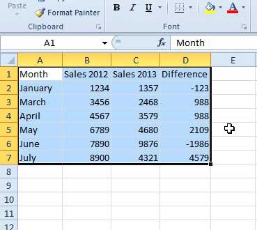 步骤 2:突出显示包含要使用负数自动红色字体设置格式的信息的单元格。