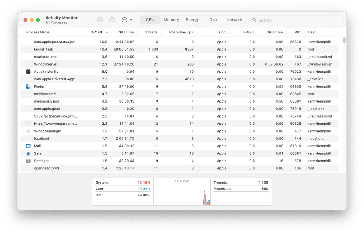 活动监视器是一个很好的资源。它可以快速告诉您哪些进程(如果有)正在占用系统资源。任何使用超过其公平份额资源的进程都可能导致 MacBook 出现延迟。