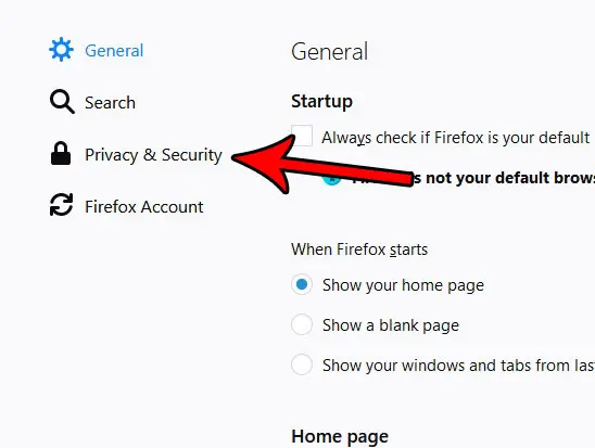第 4 步:选择隐私与安全窗口左侧的选项卡。