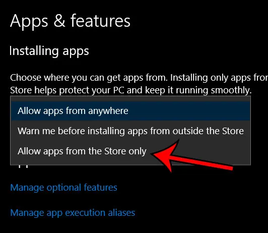 - 单击安装应用程序下拉,然后选择仅允许来自应用商店的应用。