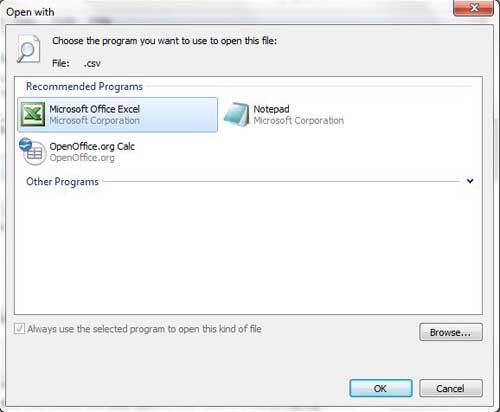 幸运的是,可以将 Windows 7 设置更改为默认使用 Excel 打开 CSV 文件。进行此更改后,双击的任何 CSV 文件都将在 Excel 中自动打开。