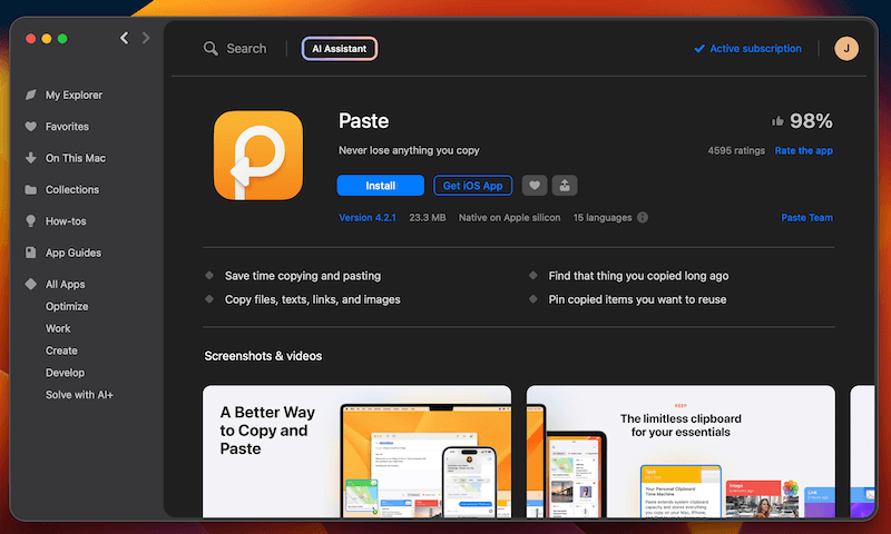 如果您正在寻找一些更奇特的东西,可以支持的不仅仅是文本,粘贴是一个不错的选择。您可以在 Mac App Store 上以 14.99 美元的价格找到它,也可以通过 Setapp 订阅(我现在正在使用的)免费获得它。不过,两个版本完全相同。