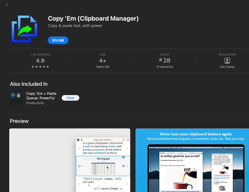 Copy 'Em 是 Apple 在 App Store 中推荐的,在撰写本文时,您可以以 14.99 美元的价格自行下载一份。