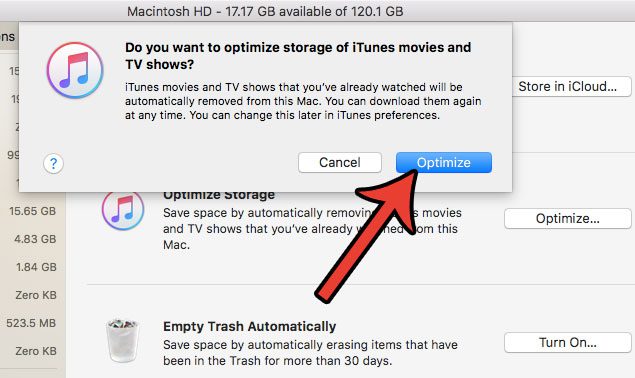 第6步:点击优化确认您了解所做的更改,这将从这台 MacBook Air 中删除您已经观看过的电视剧集和电影。