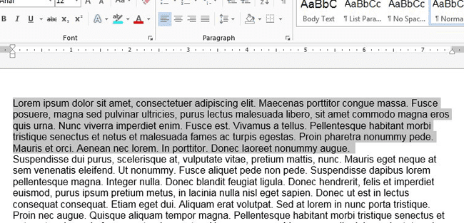 请注意,您可以通过单击文档中的某处,然后按来选择文档中的所有文本Ctrl + A在你的键盘上。