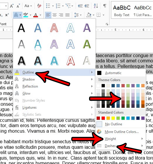本文中的步骤将向您展示如何在 Word 2013 中使用轮廓字体效果。这会为文档中的选定文本添加颜色。