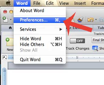 第 2 步:点击单词屏幕顶部,然后单击偏好设置。