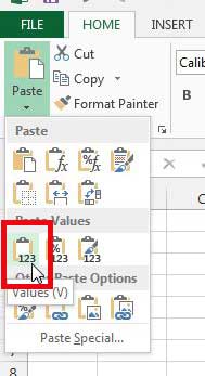 - 单击下面的箭头粘贴,然后单击价值观选项。
