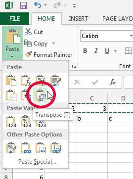 幸运的是,Excel 2013 有一项功能,允许您复制水平行数据,然后将其粘贴到垂直列中。这可以防止繁琐的数据重新输入,并且可以真正节省时间。