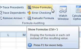 第 3 步:单击显示公式按钮在公式审核窗口顶部功能区的组部分。