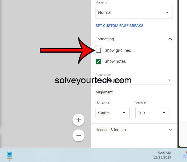 通过取消选中“显示网格线”选项,您将告诉 Google 表格您不希望网格线出现在打印文档上。这是实现无网格打印输出的关键步骤。