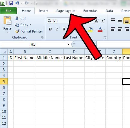 第 2 步:单击页面布局窗口顶部的选项卡。