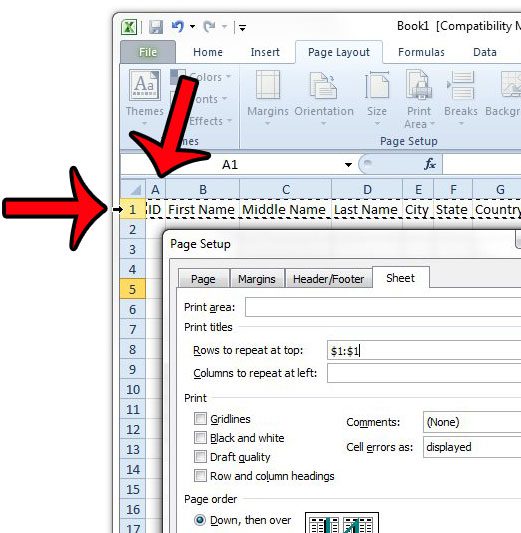 第四步:点击里面的在顶部重复的行如果您想在每页顶部打印一行,请单击字段,或者单击在左侧重复的列如果您希望在每个打印页面的左侧重复一列,请使用此字段。