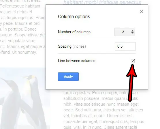 我们的文章在下面继续提供有关在 Google 文档中显示列之间的垂直线的附加信息,包括这些步骤的图片。