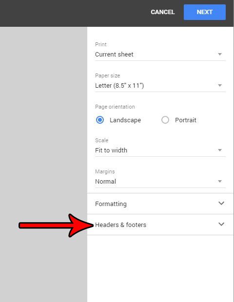 第 4 步:选择当前日期和/或当前时间选项,然后单击下一个按钮位于窗口的右上角。然后,您可以像平常一样继续打印电子表格。