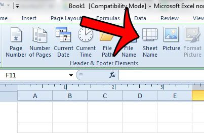 第 6 步:单击工作表名称按钮在页眉和页脚元素Office 功能区的部分。