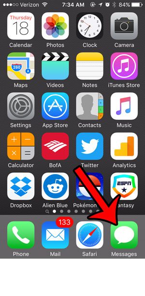 步骤 5:按屏幕下方的“主页”按钮关闭“设置”菜单,然后选择留言应用程序并打开短信对话。