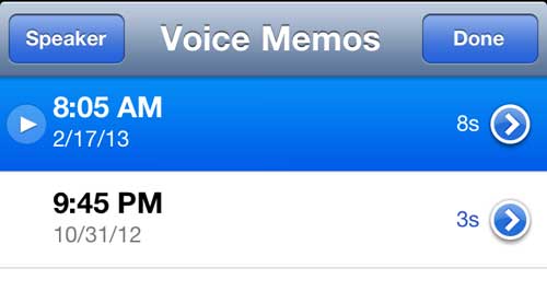 幸运的是,iPhone 5 上的语音备忘录应用程序会记录您所说的任何内容,然后让您可以选择在完成后通过电子邮件发送音频文件。