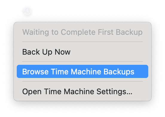 - 现在,在顶部菜单栏中,单击 Time Machine 图标 > 浏览 Time Machine 备份,然后使用箭头移动时间线。