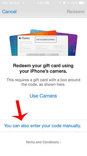 第 4 步:触摸 Y您也可以手动输入您的代码按钮。您还可以点击使用相机按钮,但该功能并非在每个国家/地区都可用,因此您的成功率可能会因您所在的位置而异。