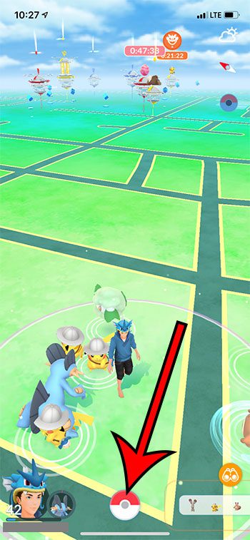 第 2 步:点击屏幕底部的红色和白色 Pokeball 图标。