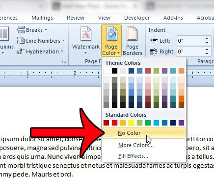 第 3 步:单击页面颜色按钮在页面背景Office 功能区的部分,然后单击无颜色选项。