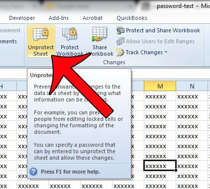 第 3 步:单击取消保护工作表按钮在变化导航功能区的部分。