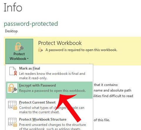 - 单击“保护工作簿”,然后单击“使用密码加密”。