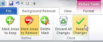 第 7 步:单击保留更改按钮在关闭功能区部分以删除背景。