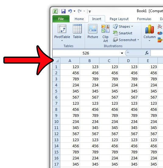 第 2 步:单击电子表格左上角的按钮(1和一个) 选择整个工作表。如果您只想删除电子表格的一部分边框,请选择这些单元格。您可以通过单击电子表格左侧的行号或电子表格顶部的列字母来选择整行或整列。