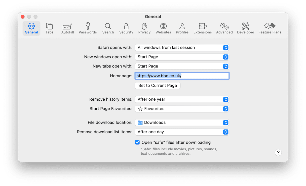 - 单击 Safari 菜单并选择“设置”>“常规”。