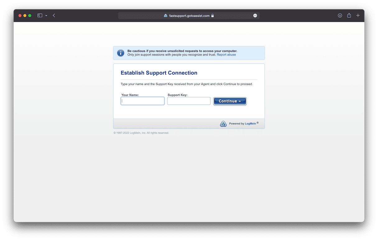 从表面上看,Helpme.net 似乎很安全,但一些信誉良好的网站却报告了相反的情况。该服务确实使用名为 LogMeIn 的合法远程应用程序来访问您的计算机。但是,他们的技术人员在您授予他们访问权限后所做的事情会使该网站变得极其危险。