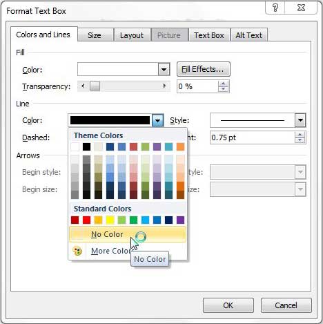 第四步:点击右侧的下拉菜单颜色在线窗口部分,然后单击无颜色选项。