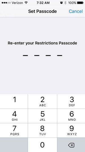 此方法将要求您启用限制,其中包括创建密码。