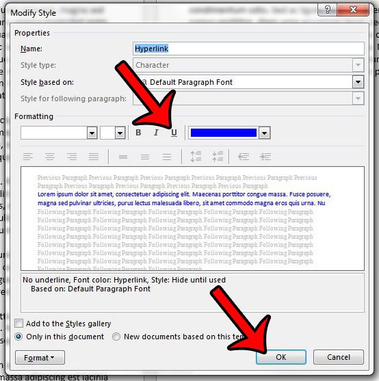 我们上面的教程重点是从文档中的超链接中删除下划线,但您可能只想从非超链接的单词或短语中删除下划线。