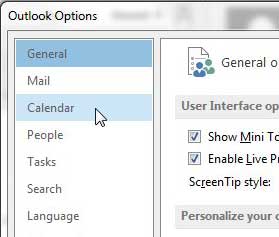 第 4 步:单击日历左侧的选项卡展望选项窗户。