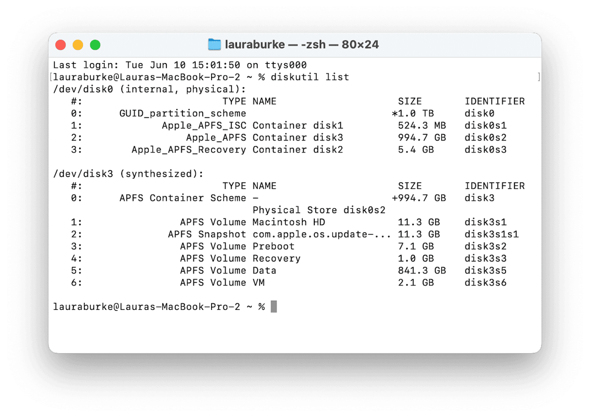 - 键入此命令,然后按 Return 键以查看已连接驱动器的完整列表: