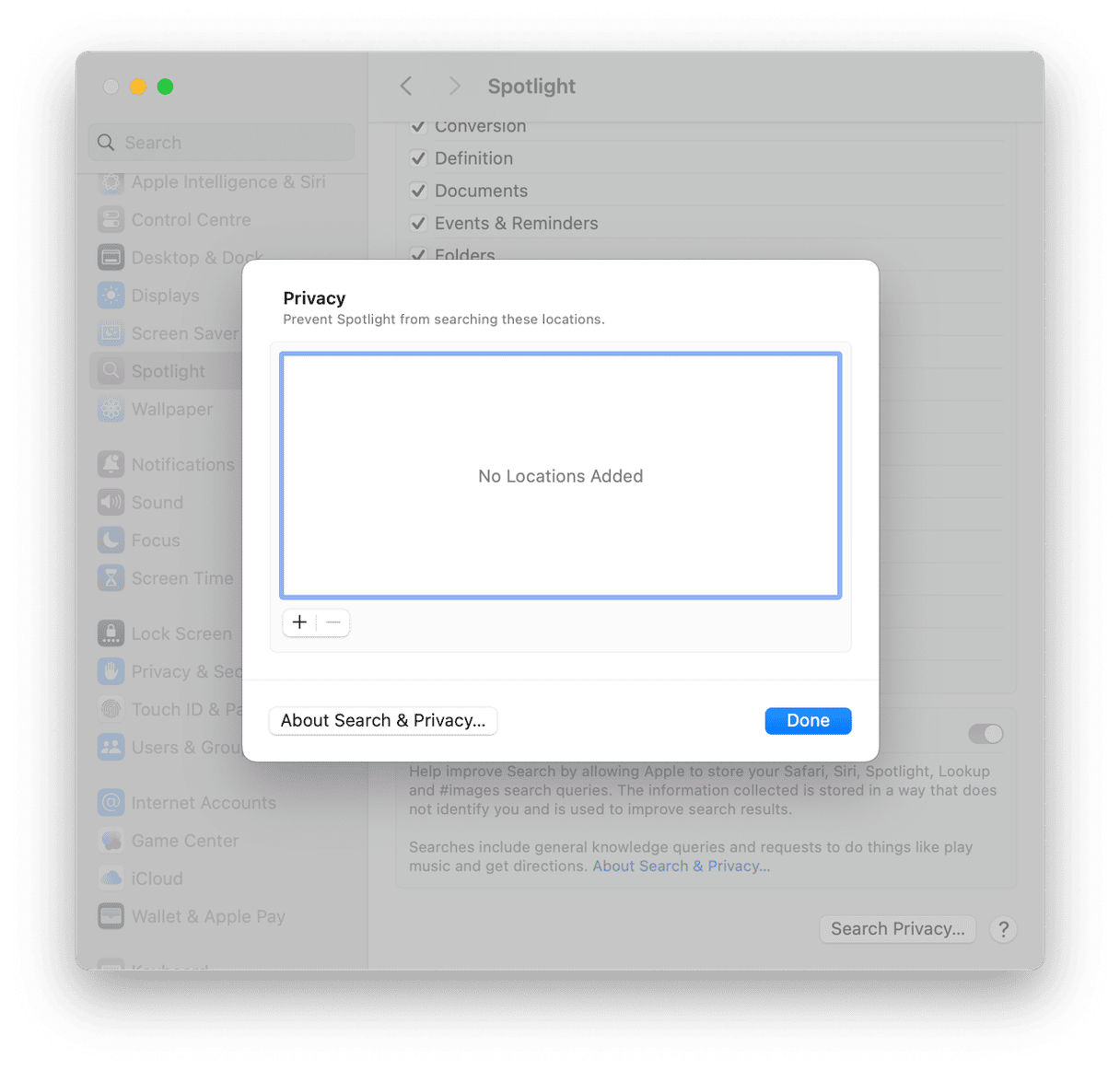 - 打开系统设置 > Spotlight。