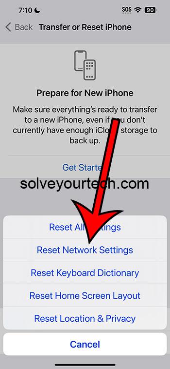 - 您将看到重置选项列表。选择“重置网络设置”。