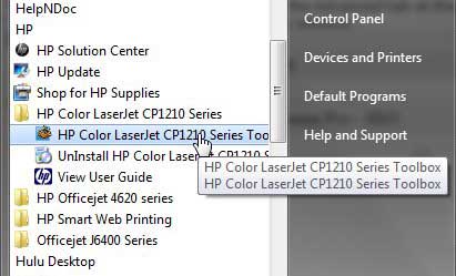 第 3 步:单击HP 彩色激光打印机 CP1210 系列文件夹一次将其展开,然后单击HP Color Laserjet CP1210 系列工具箱选项