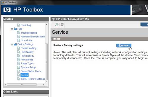 如何恢复 HP Color Laserjet CP1215 的默认设置