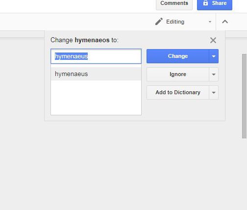 第 4 步:选择改变,忽略, 或者添加到词典,然后重复此操作,直到 Google 文档完成整个文档的拼写检查。