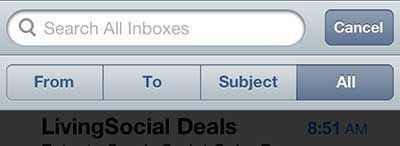 您可能一直在其中一个电子邮件屏幕上搜索搜索图标或按钮,但实际上,您可以通过手势找到一个搜索字段。因此,请按照以下步骤学习如何在 iPhone 5 上搜索邮件。